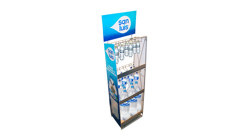 Exhibidores para aguas carbonatadas, agua, artÃculos para el hogar y cualquier otro producto de consumo masivo.